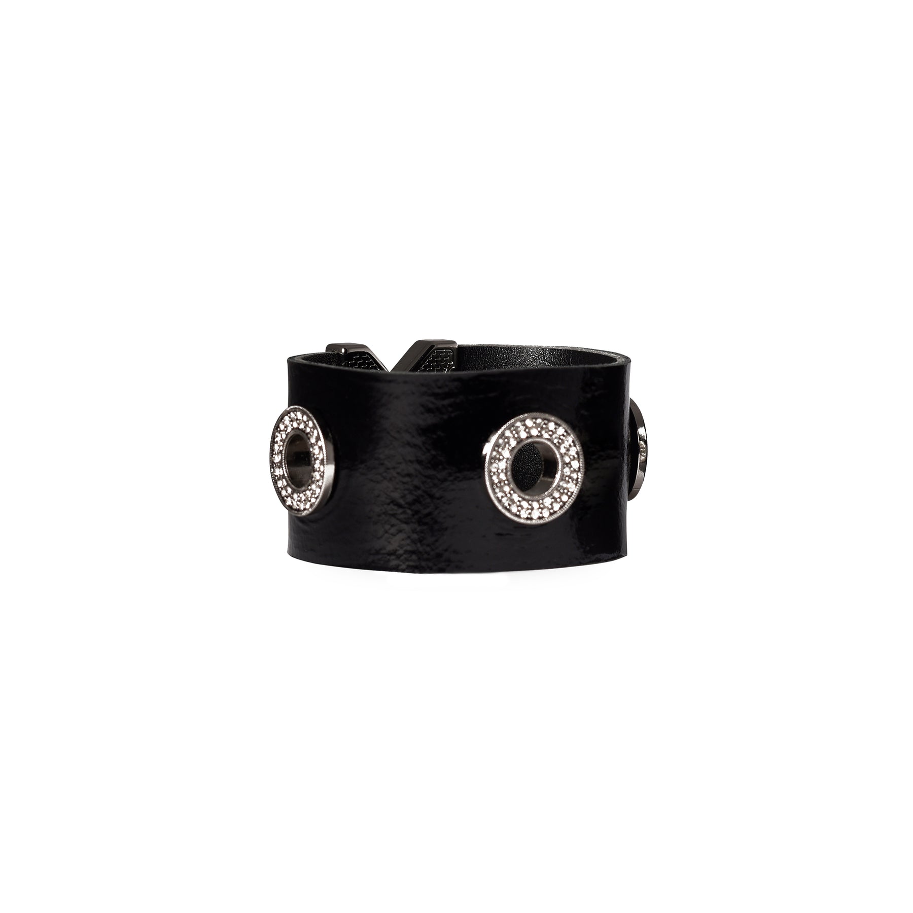 Estes Bracelets são perfeitos para compor qualquer tipo de look, do esportivo ao social, pois a presença do couro legítimo acabamento verniz aliado aos detalhes dos metais, ilhós com pavê de cristais, resulta em uma peça muito Sofisticada e Combinável. Em varias versões de Couro e Acabamentos de metais Piton Black Gold, Black Gold, Black Silver, para atender especialmente aos mais exigentes que não abrem mão da beleza e qualidade em seus acessórios.