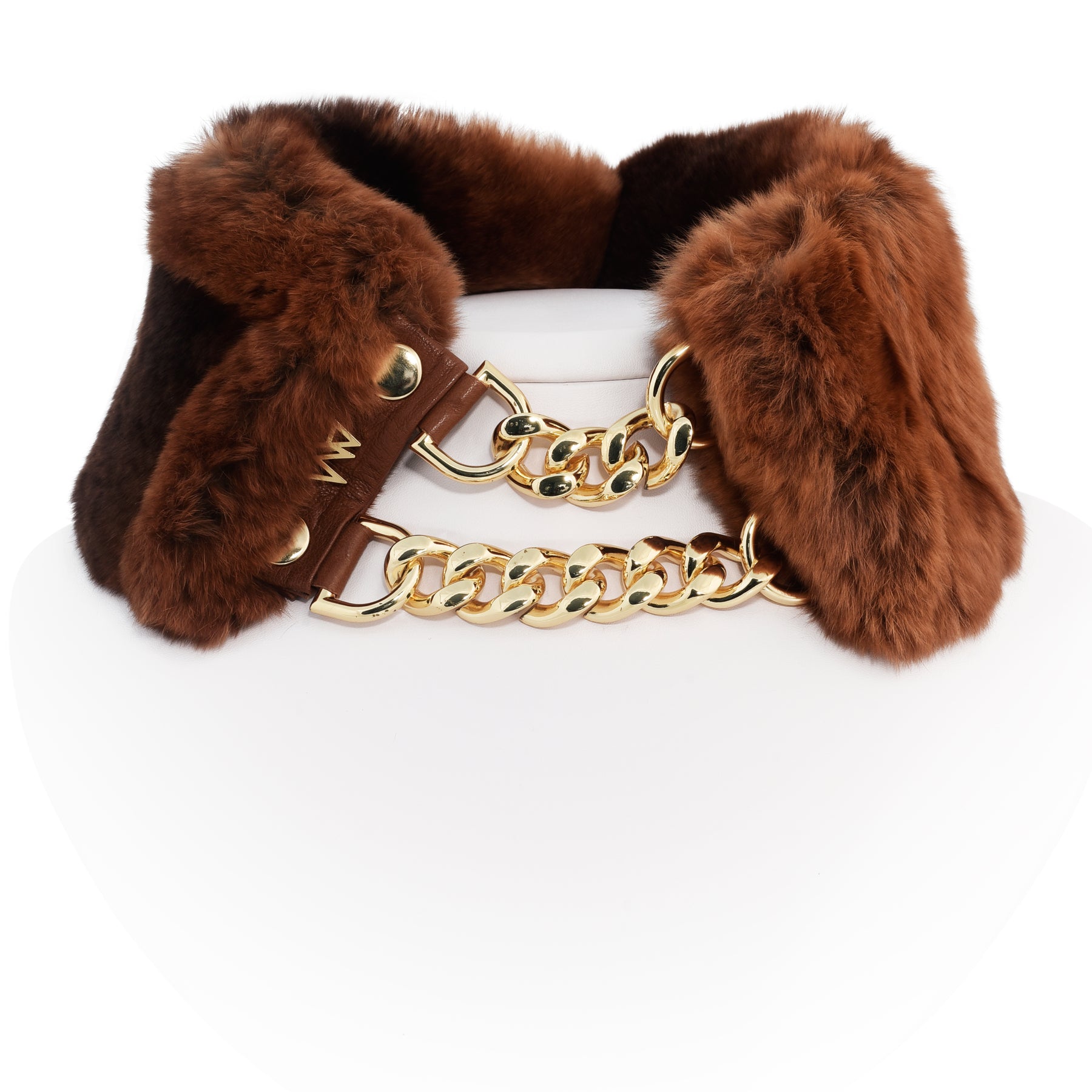 Fox Brown - Gola de Pele Marrom Café Metais Grafite