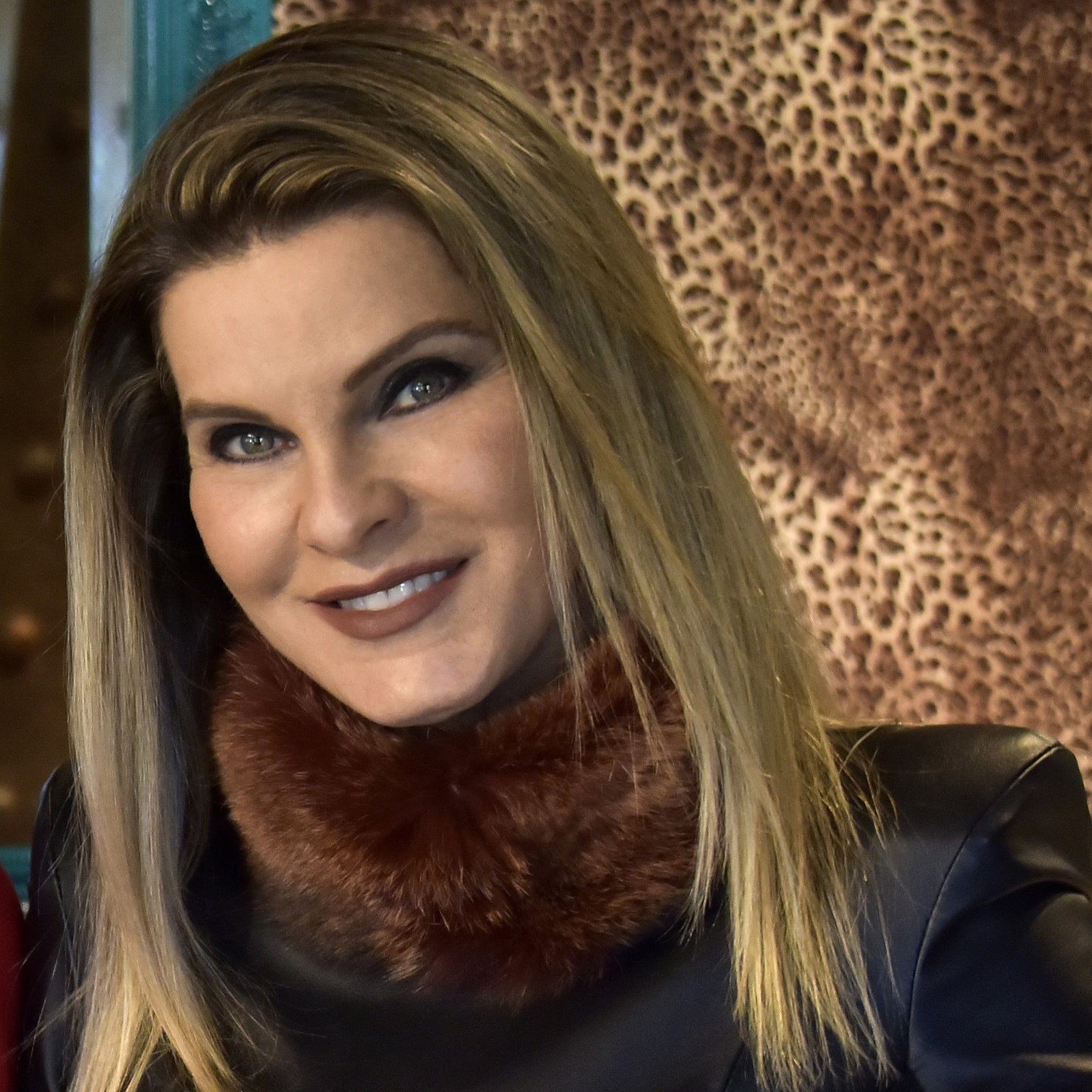 Fox Red - Gola de Pele Marrom avermelhada Metais Rose