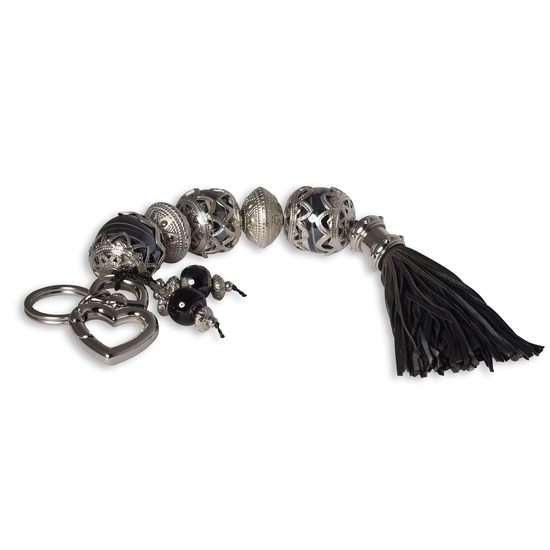 Black Silver - Muranos Pretos & Tassel Preto Metais Níquel