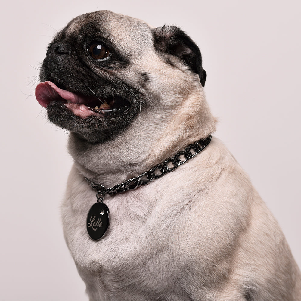 As Coleiras Petit Dog's Name inspiradas em cãezinhos de pequeno porte, são acessórios muito glamourosos, elaborados com malhas mais leves e delicadas, sem perder o encanto. A Linha Dog's Name veio para garantir a segurança e proteção do seu amiguinho, sem descuidar do charme peculiar dos nossos acessórios, onde poderemos ostentar o nome na parte principal e no verso o contato do responsável.