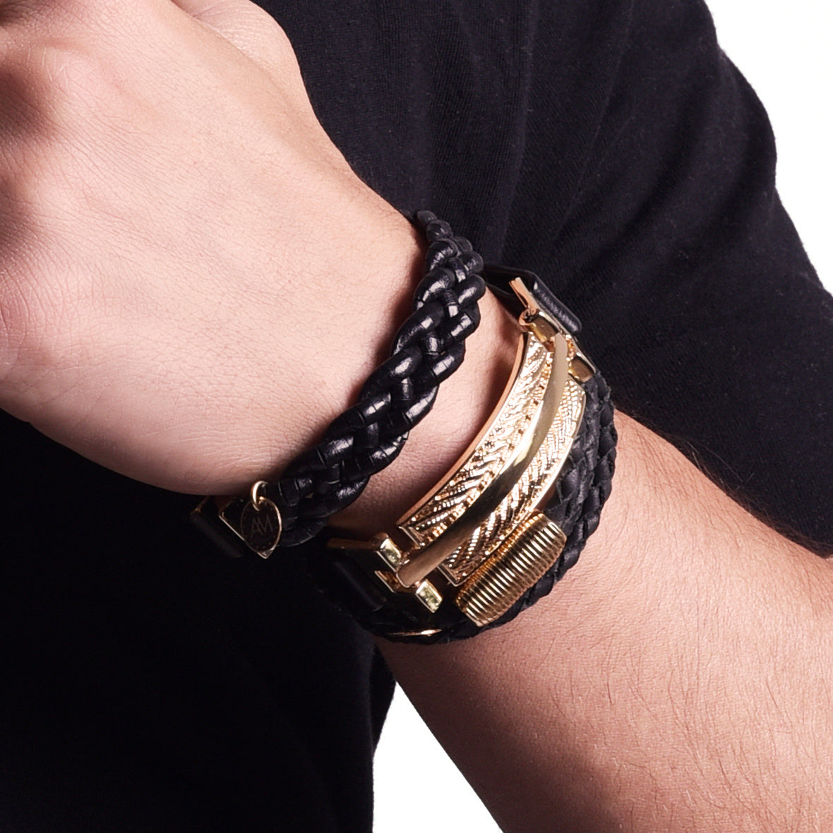 Black Gold - Couro Tressê Preto Fecho de ímã Dourado