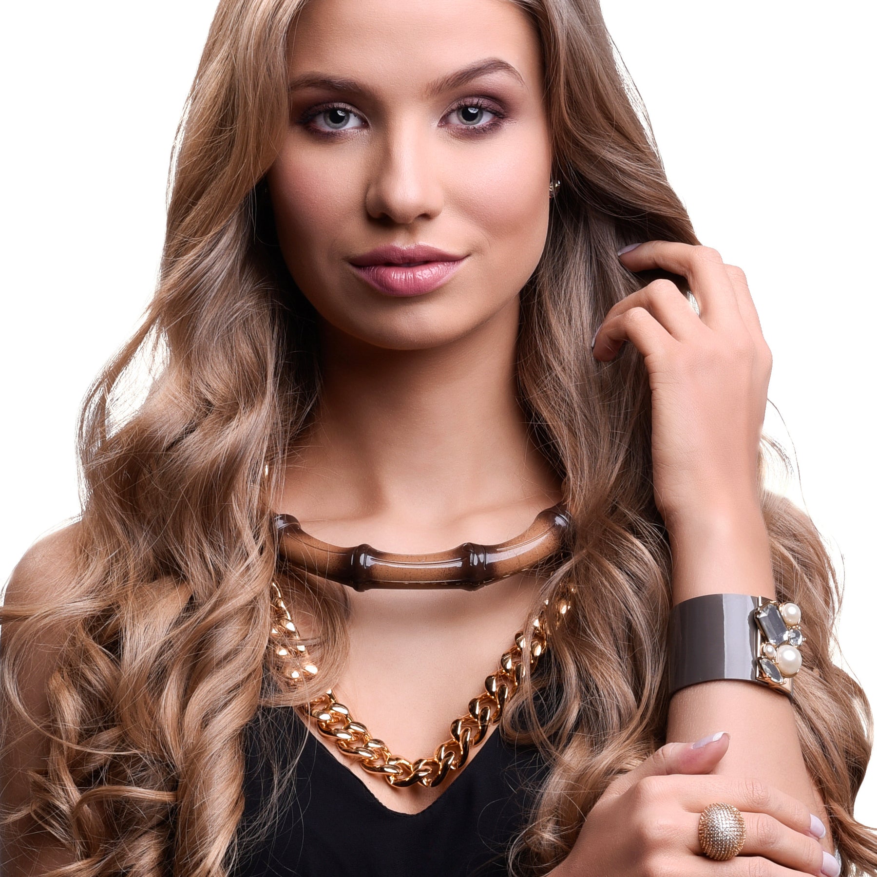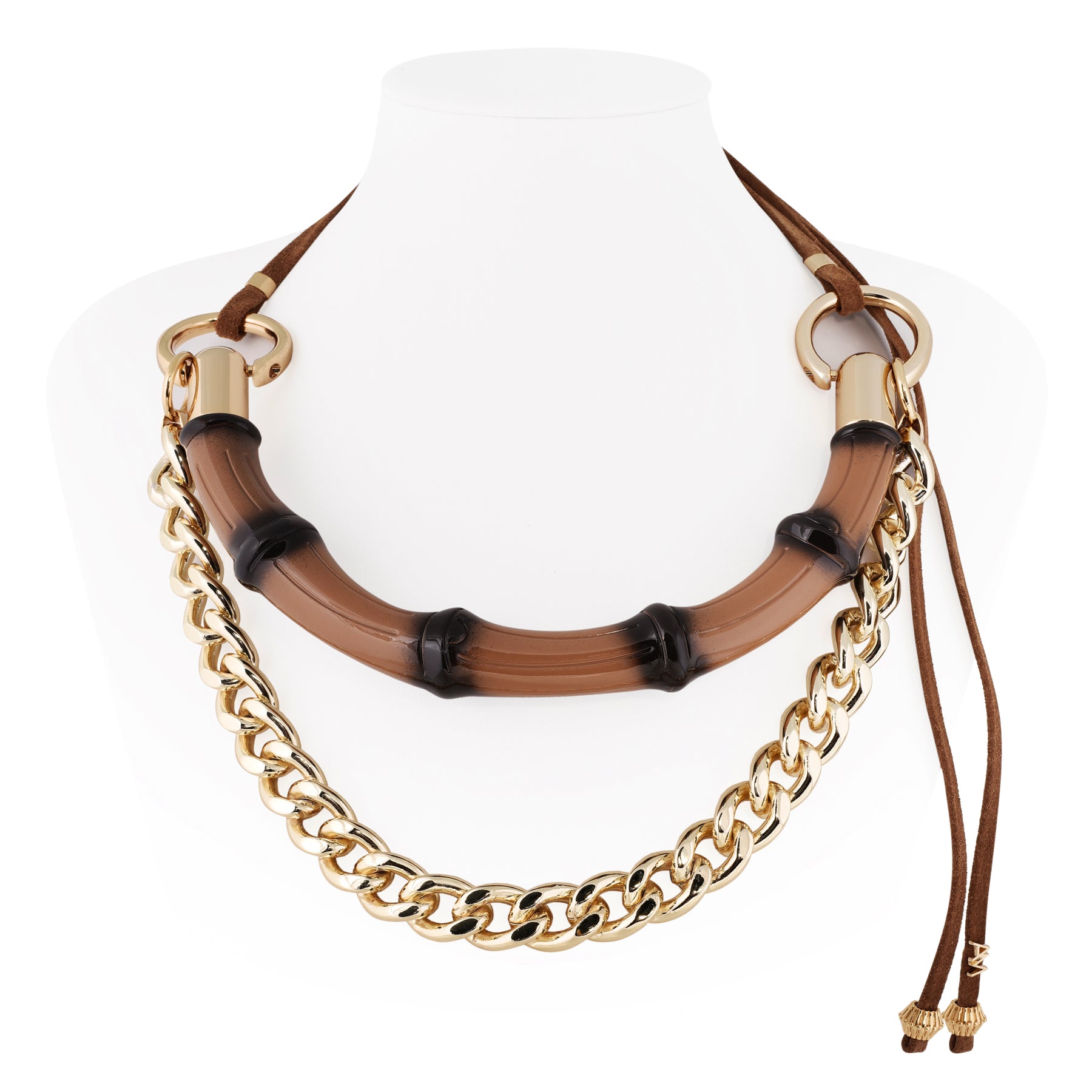 Colar extremamente Glamouroso e enfeitador leva este nome pela presença de uma peça estilo Bambu, com uma corrente dourada para compor a ideia de um acessório que enfeita de forma absoluta o colo, lembra muito as criações das grandes Maisons francesas pela sua exuberância. Ideal para ser usado no verão com roupas decotadas, beach style e também no inverno sob cashmeres, pois é um acessório incrivelmente chique.