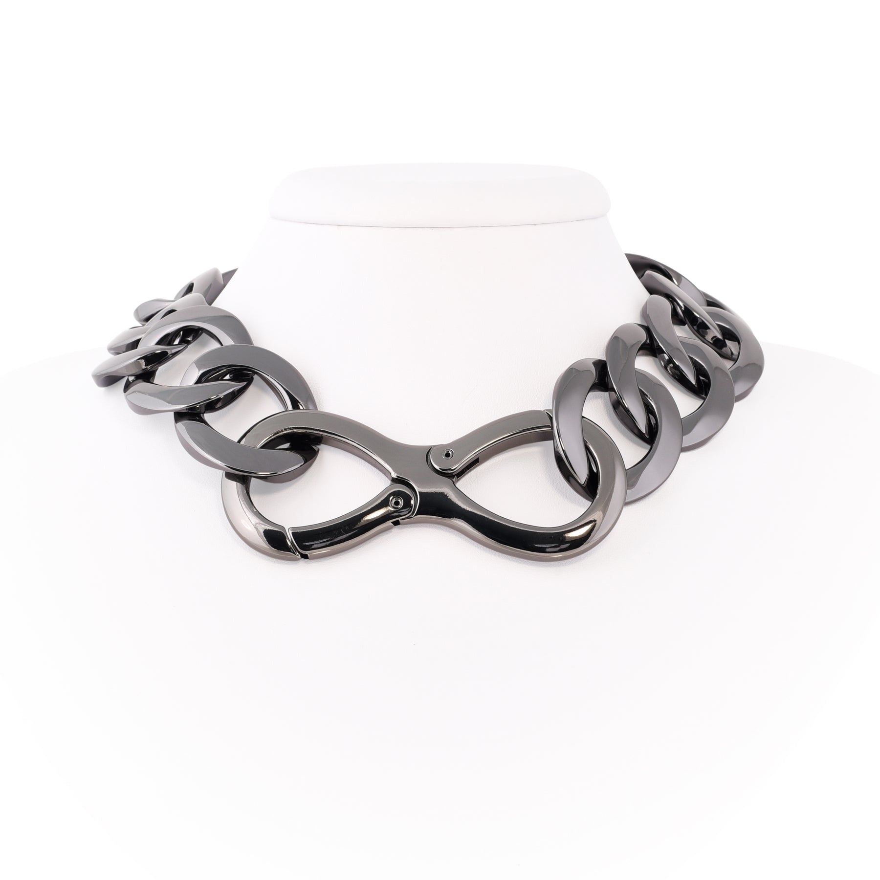 Para ficar bem acomodado no colo, antes de usar o colar conferir na sua parte interna que a abertura dos elos fiquem todas alinhadas para cima e para o mesmo lado do Infinito.