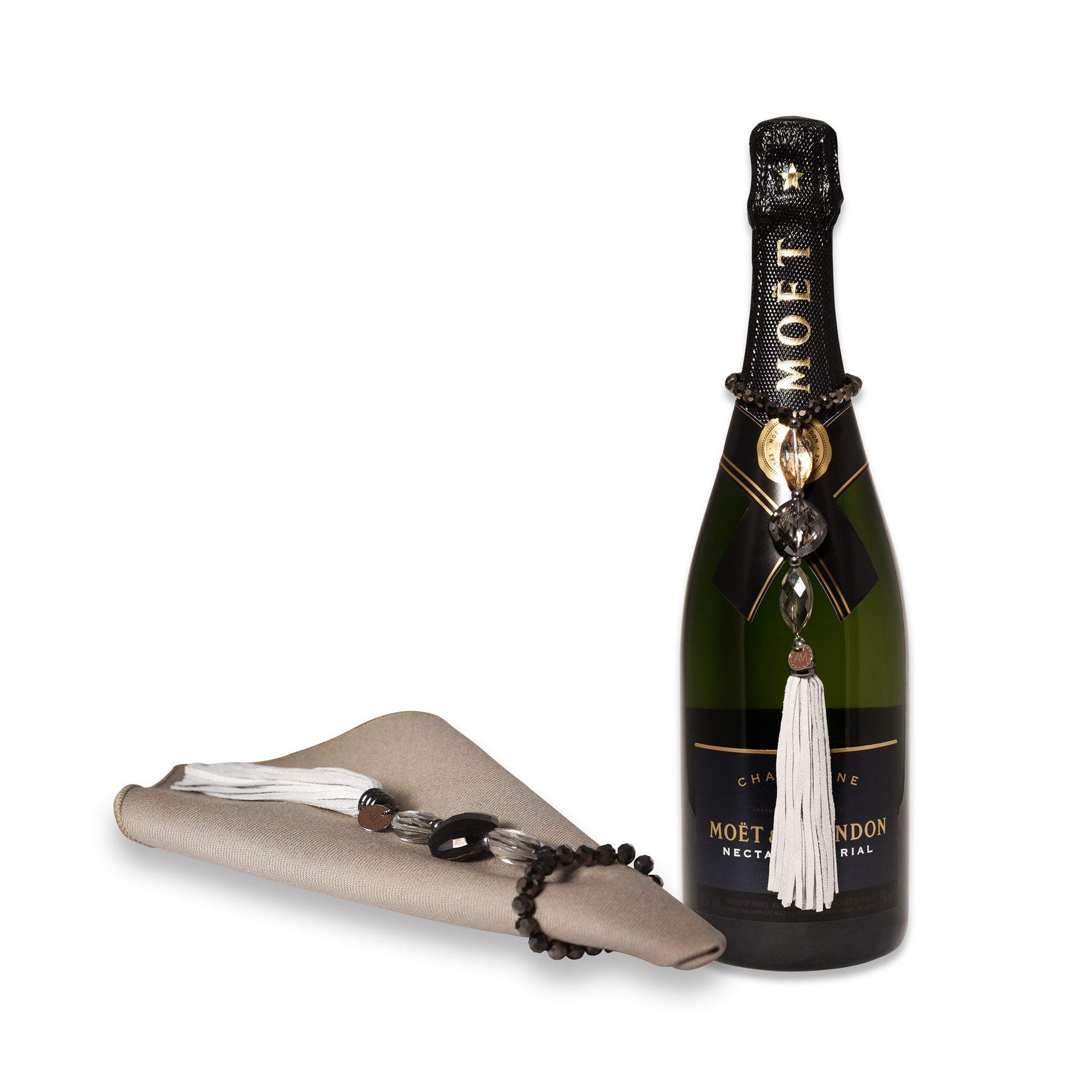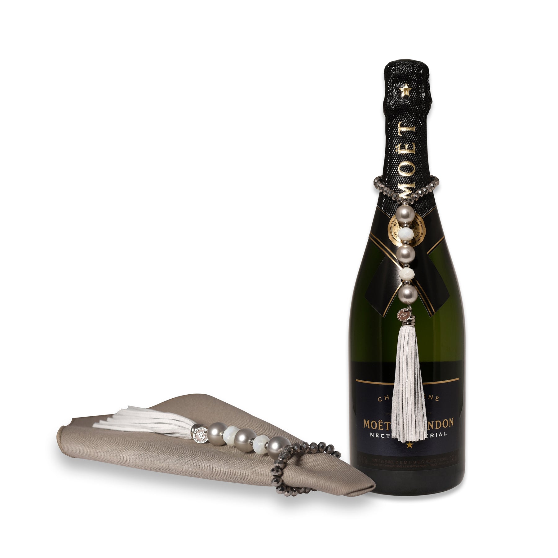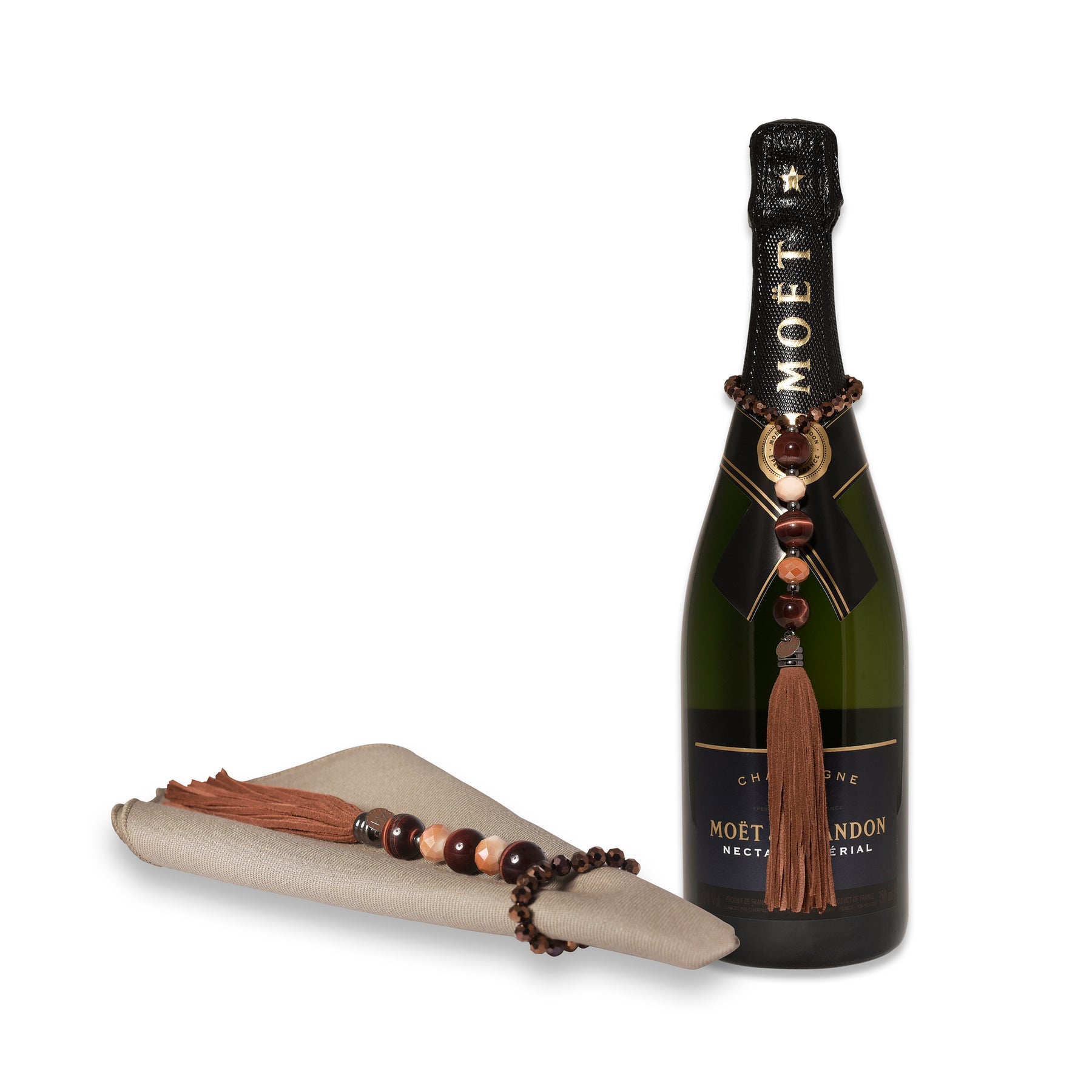 Estes adornos foram criados para que sua mesa tenha um diferencial a mais no quesito Elegância & Charme ao receber amigos ou reunir a família para comemorações especiais. São peças montadas com Pérolas, Cristais sintéticos facetados & Quartzo Olho de Boi - uma pedra marrom deslumbrante, que dentre suas propriedades místicas, uma delas é proporcionar aconchego, e além de sua mesa ficar encantadora, vai proporcionar muita harmonia para sua casa. A sugestão é 6 Adornos de Guardanapos para um Adorno de Garrafa, de forma que a mesa fique devidamente bem organizada! Porém, ficamos à disposição para pedidos maiores, caso a quantidade desejada não esteja disponível para compra no site