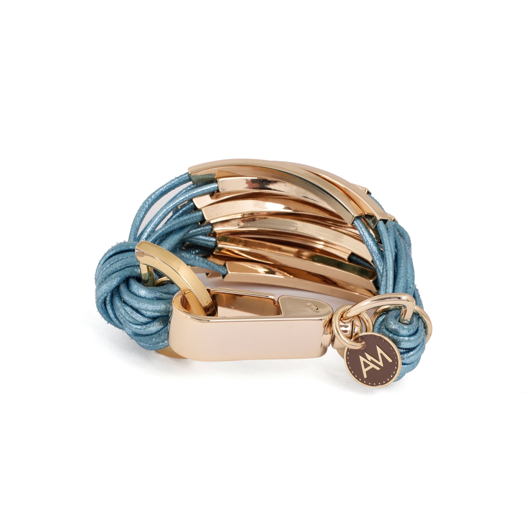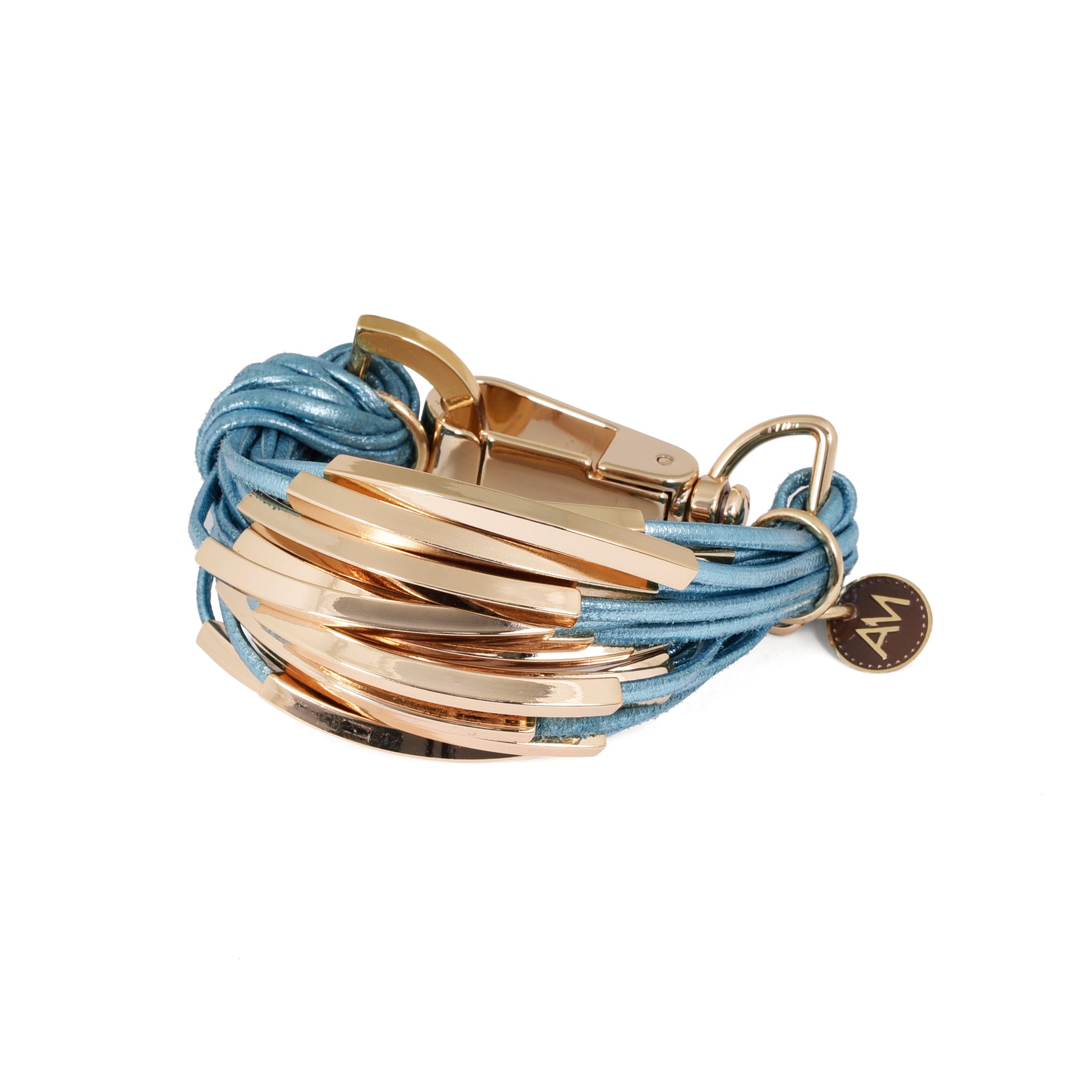Blue Gold - Couro Azul Piscina com Metais Dourado