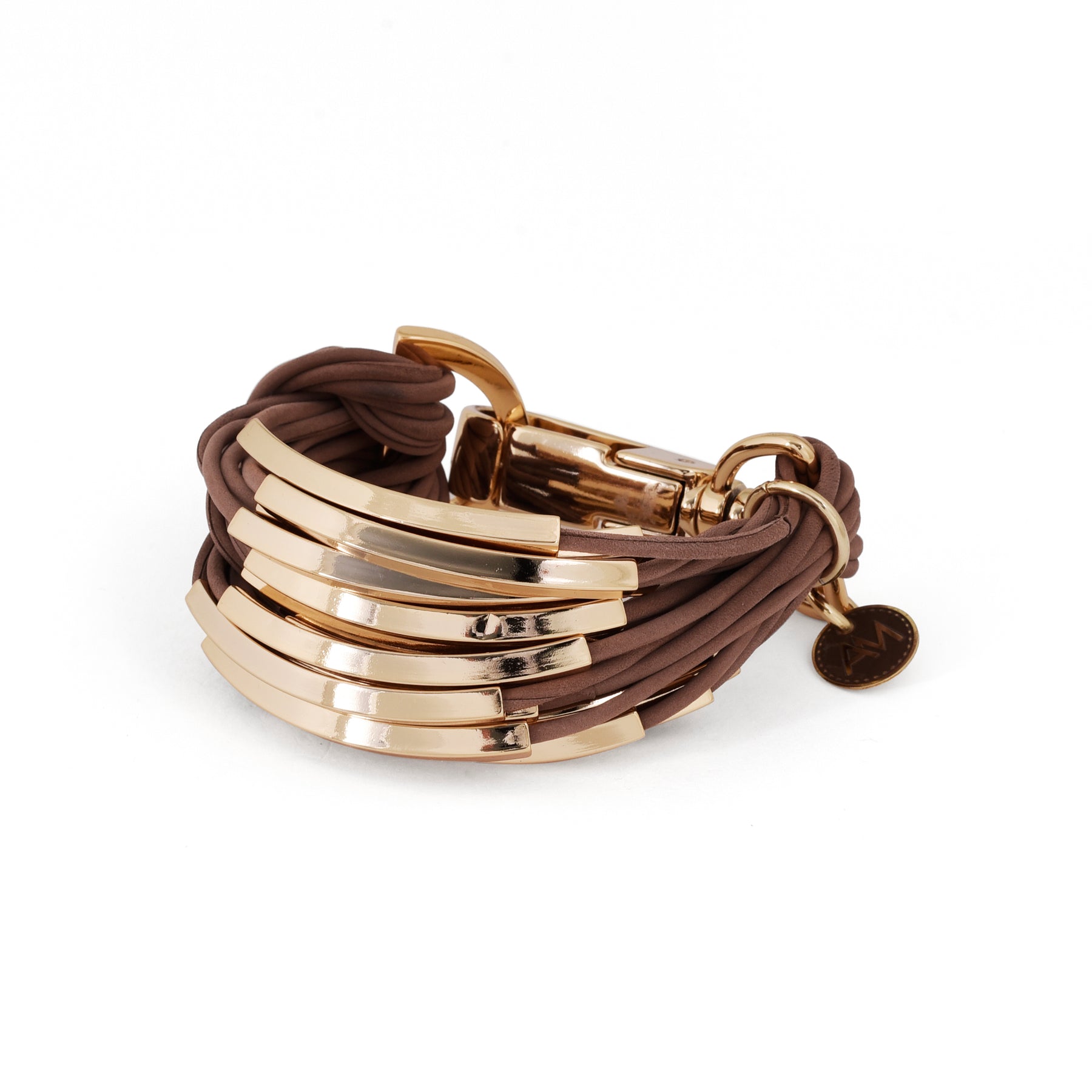 Capuccino Gold - Couro Marrom Claro com Metais Dourado