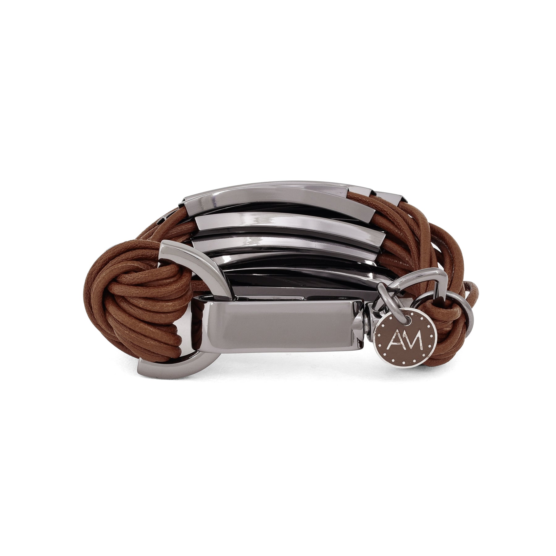 Coffee Ônix - Couro Marrom Café com Metais Grafite